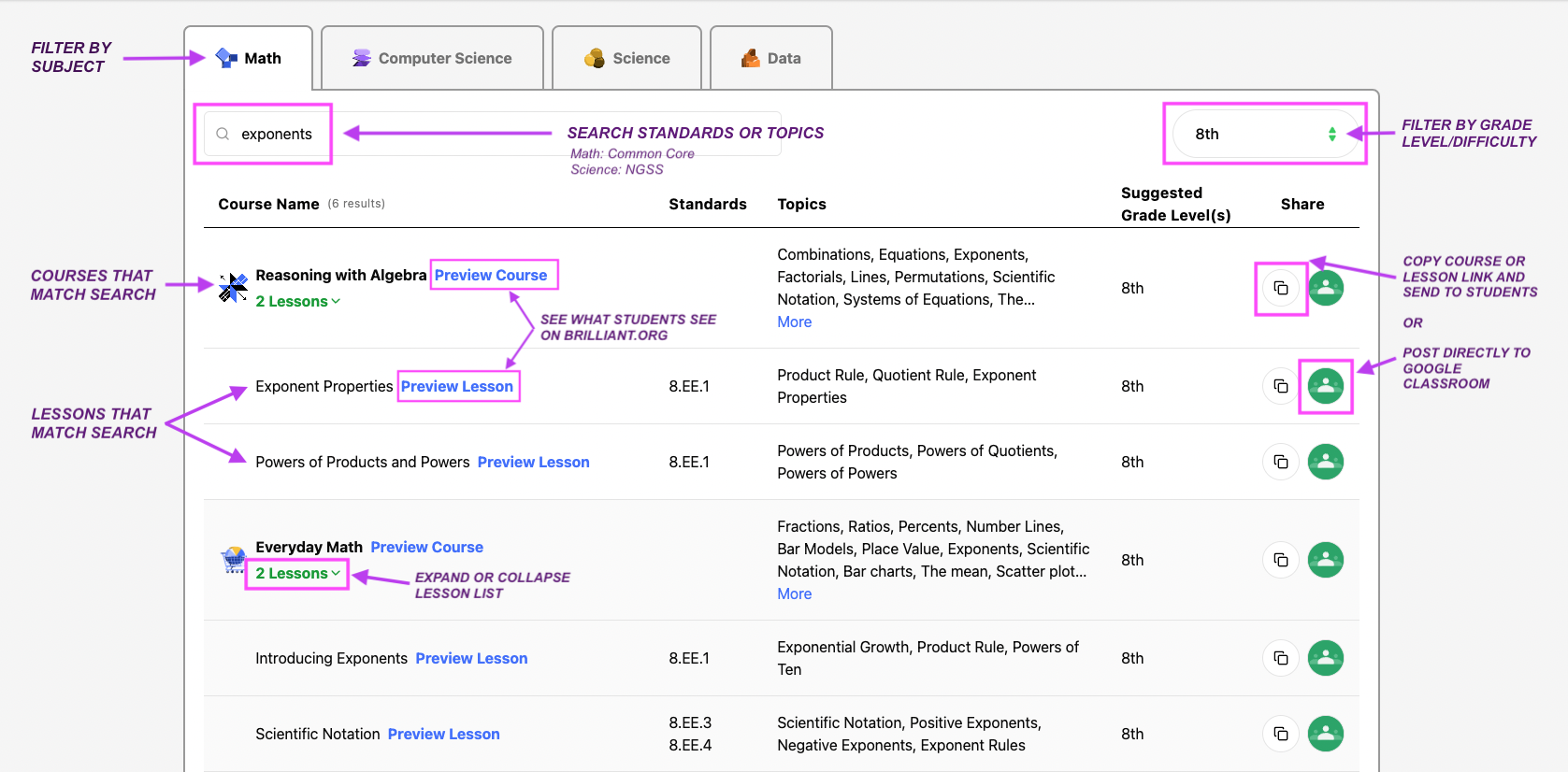 ‼️ NOTE: In order for students to access a course or lesson, they MUST have a student account. Only students with Brilliant.org student accounts can access Brilliant’s content.